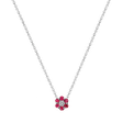 Decentní a luxusní náhrdelník ve tvaru květu je radost nosit. Zlatý řetízek v růžovém, bílém nebo žlutém 14kt zlatě s přívěskem s briliantem a rubíny v různých velikostech si doslova zamilujete. Šperk je jemný no výrazný zároveň a hodí se na všechny příležitosti.