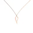 Náhrdelník z kolekce ALOve Angels z bílého, žlutého a růžového zlata s jemnou řetízkovou siluetou a symbolickým přívěskem ve tvaru andělských křídel s diamantem. Luxusní doplněk i ochranný talisman.
