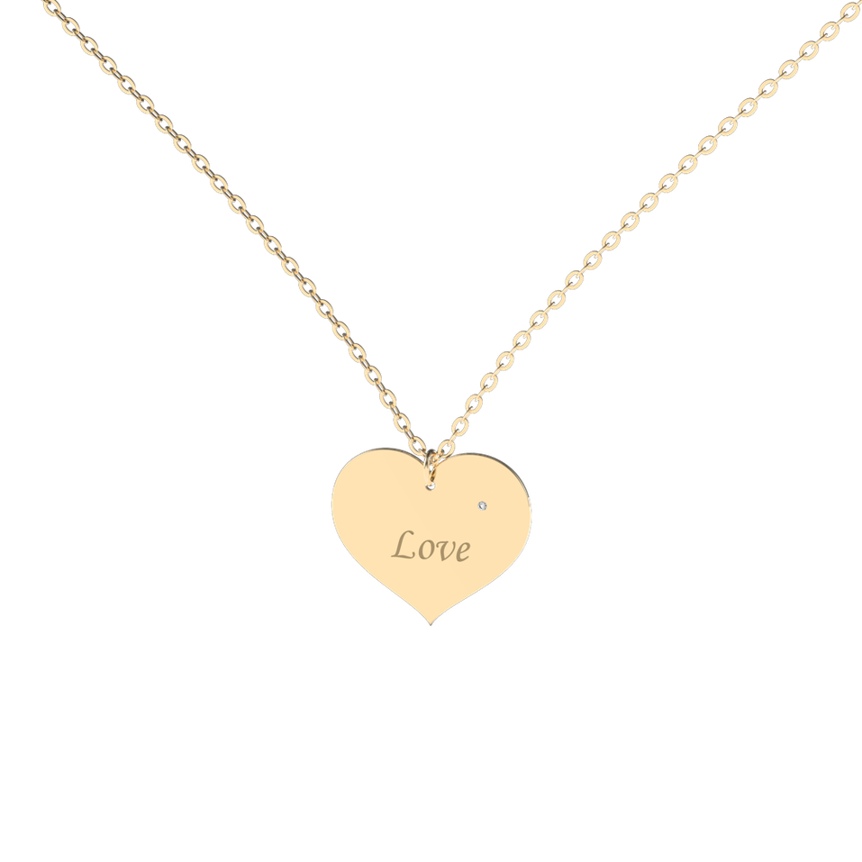 Luxusní náhrdelník ALOve inspirovaný symbolem zamilovaných. Šperk ze 14kt zlata tvořený jemným řetízkem a přívěskem ve tvaru srdce s nápisem Love se zářícím diamantem.
