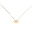 Nadčasový zlatý náhrdelník z kolekce ALOve Touch of Gold s jemnou řetízkovou siluetou, které dominuje přívěsek ve tvaru oválu s nápisem Love a efektně zasazeným diamantem nejvyšší kvality.