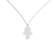 Minimalistický náhrdelník ALOve ze 14kt bílého, žlutého nebo růžového zlata, kterému dominuje symbolický přívěsek ruky (,,hamsa", ,,Ruka Fátimy") s diamantem. Luxusní šperk a ochranný talisman.