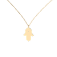 Minimalistický náhrdelník ALOve ze 14kt bílého, žlutého nebo růžového zlata, kterému dominuje symbolický přívěsek ruky (,,hamsa", ,,Ruka Fátimy") s diamantem. Luxusní šperk a ochranný talisman.