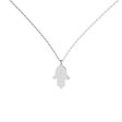 Minimalistický náhrdelník ALOve ze 14kt bílého, žlutého nebo růžového zlata, kterému dominuje symbolický přívěsek ruky (,,hamsa", ,,Ruka Fátimy") s diamantem. Luxusní šperk a ochranný talisman.