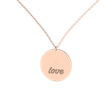 Minimalistický náhrdelník z kolekce ALOve Touch of Gold z bílého, žlutého nebo růžového zlata s jemnou řetízkovou siluetou, které dominuje kulatý přívěsek s nápisem Love a třpytivým diamantem.