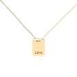 Luxusní zlatý náhrdelník z kolekce ALOve ID v minimalistickém módním stylu s obdélníkovým přívěskem s nápisem Love podrženým třpytem diamantu se dokonale kombinuje s ostatními šperky.