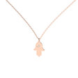 Minimalistický náhrdelník ALOve ze 14kt bílého, žlutého nebo růžového zlata, kterému dominuje symbolický přívěsek ruky (,,hamsa", ,,Ruka Fátimy") s diamantem. Luxusní šperk a ochranný talisman.