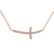 Mějte svůj talisman vždy u sebe. Náhrdelník ALOve s jemným řetízkem z růžového zlata s přívěskem ve tvaru mírně prohnutého křížu s diamanty je symbolem ochrany.