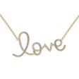 Efektní náhrdelník ze žlutého zlata, kterému dominuje třpitivý briliantový nápis love. Výrazný šperk, který se řídí žhavými módními trendy, které nosí i světové celebrity.