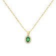 Luxusní přívěsek vás okouzlí svou oválnou siluetou ze žlutého zlata, do které je vsazen mistrně broušený smaragd obklopený brilianty. Zavěste ho na svůj oblíbený zlatý řetízek a proměňte se v princeznu. Přívěsek se prodává samostatně bez řetízku.