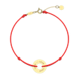 Minimalistický náramek z kolekce ALOve Touch of Gold s barevnou šňůrkou a kulatým přívěskem z bílého, žlutého nebo růžového zlata s nápisy Love a diamantem. Stylový šperk pro každodenní nošení.