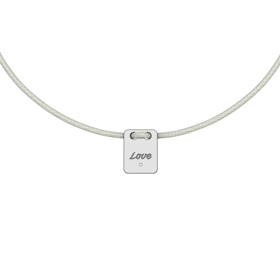 Exkluzivní minimalistický šperk pro každou ženu milující jednoduchost a luxus. Náramek ALOve s barevnou šňůrku s vojenskou placičkou z bílého, žlutého nebo růžového zlata s decentním diamantem.