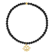 Náramek s achátovými kuličkami a přívěskem ve tvaru lotosového květu ze 14karátového žlutého zlata s briliantem. Průměr kuličky: 3 mm.