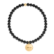 Náramek s achátovými kuličkami a kruhovým přívěskem ze 14karátového žlutého zlata s nápisem ,,l♡ve" a briliantem. Průměr kuličky: 4 mm.