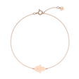 Nadčasový zlatý náramek ALOve v originálním a velice módním designu. Šperk tvořený řetízkem s jemnou siluetou, který propojuje symbol ruky pro větší efekt zdobený zářícím diamantem.