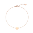 Efektní náramek z růžového zlata s jemnou řetízkovou siluetou, kterou propojuje výrazný detail ve tvaru srdce zdobeného efektně broušeným diamantem.
