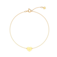 Elegantní náramek v romantickém módním stylu ze žlutého zlata, který je tvořený řetízkem a dominantou v podobě srdce se zářícím diamantem.