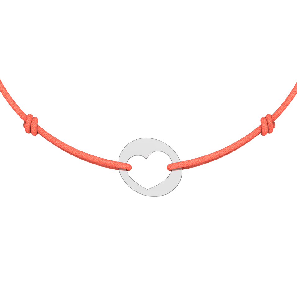 Trendy náramek z kolekce ALOve Love Message s barevnou šňůrkou a kulatým přívěskem z bílého, žlutého nebo růžového zlata s otvorem ve tvaru srdce si zamiluje každá žena. Náramek zdobí třpytivý diamant.