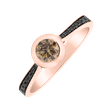 Elegantní diamantový prsten z růžového a černého zlata je originální volbou pro žádost o ruku, ale také nádherným dárkem. Minimalistický okrouhlý design centrálně zasazeného hnědého diamantu je zdůrazněn černými brilianty po stranách.