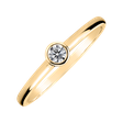 Jemný prsten z bílého, žlutého nebo růžového 14kt zlata. Zajímavě zasazený briliant kulatého brusu je spojením tradičního zásnubního prstýnku s praktičností hladkého tvaru. Šperk je vhodný pro žádost o ruku i jako krásný dárek.