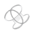 Luxusní prsten vyrobený z bílého 14kt zlata tvoří dva kroužky, které jsou vzájemně propletené a zdobí jej třpytivé diamanty. Prsten působí díky svému dizajnu výrazně a zaručeně jej nikdo nepřehlédne.