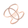 Luxusní prsten vyrobený z růžového 14kt zlata tvoří dva kroužky, které jsou vzájemně propletené a zdobí jej třpytivé diamanty. Prsten působí díky svému dizajnu výrazně a zaručeně jej nikdo nepřehlédne.