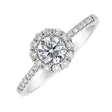 Úchvatný prsten vyrobený z bílého 14-karátového zlata v designu halo s