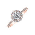 Šperk, které okouzlí každou ženu. Úchvatný prsten vyrobený z růžového 14-karátového zlata v designu halo s centrálním diamantem obklopeným drobnými brilianty.