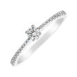 Briliantový zásnubní prsten z bílého zlata je výjimečný šperk, který svým třpytem zaujme na první pohled. Obroučka je posetá drobnými diamanty a uprostřed vyniká větší briliant.