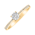 Briliantový zásnubní prsten ze žlutého zlata je výjimečný šperk, který svým třpytem zaujme na první pohled. Obroučka je posetá drobnými diamanty a uprostřed vyniká větší briliant.