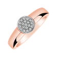 Originální prsten ze 14kt bílého, růžového nebo růžového zlata s hrubší obroučkou s diamanty zasazenými do kruhu zaujme na první pohled. Tento okouzlující prsten potěší každou ženu, která má ráda výazné šperky.