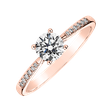 Luxusní zásnubní prsten, který jí vyrazí dech. Jemná zlatá obroučka s centrálním briliantem a menšími postranními brilianty je jedinečný šperk pro lásku vašeho života. Růžové 14kt zlato, diamanty, nadčasový design a nezaměnitelný lesk tvoří z tohoto prstýnku opravdu výjimečnou volbu.