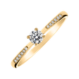 Luxusní zásnubní prsten, který jí vyrazí dech. Jemná zlatá obroučka s centrálním briliantem a menšími postranními brilianty je jedinečný šperk pro lásku vašeho života. Žluté 14kt zlato, diamanty, nadčasový design a nezaměnitelný lesk tvoří z tohoto prstýnku opravdu výjimečnou volbu.