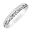 Jedinečný prsten ze 14kt bílého zlata zdobený brilianty, které krásně lemují část prstenu. Třpytivé diamanty dodávají šperku přepychový vzhled.