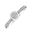 Elegantní diamantový prsten z bílého zlata je skvělou volbou pro žádost o ruku, ale také nádherným dárkem. Minimalistický okrouhlý design centrálně zasazeného kamene je zdůrazněn třpytivými brilianty po stranách.