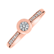 Elegantní diamantový prsten z růžového zlata je skvělou volbou pro žádost o ruku, ale také nádherným dárkem. Minimalistický okrouhlý design centrálně zasazeného kamene je zdůrazněn třpytivými brilianty po stranách.