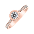 Elegantní diamantový prsten z růžového zlata je skvělou volbou pro žádost o ruku, ale také nádherným dárkem. Minimalistický okrouhlý design centrálně zasazeného kamene je zdůrazněn třpytivými brilianty po stranách.