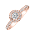 Nádherný 14kt zlatý prsten posetý brilianty je vyrobený v halo stylu. Centrální diamant obklopený menšími je oblíbený design pro zásnubní prsteny. Tento třpytivý kousek v růžovém zlatě je opravdu výjimečný šperk, který si zamilujete.