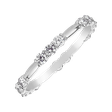 Originální prsten s elegantně rozmístěnými diamanty je vyroben ze 14kt bílého zlata. Krásně vynikne sám o sobě, ale skvěle se hodí i jako snubní prsten v kombinaci s briliantovým zásnubním prstenem.