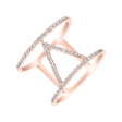 Luxusní prsten vyrobený z růžového 14kt zlata tvoří dva kroužky spojené tvarem do písmena V, který zdobí třpytivé diamanty. Prsten působí díky svému dizajnu výrazně a zaručeně jej nikdo nepřehlédne.